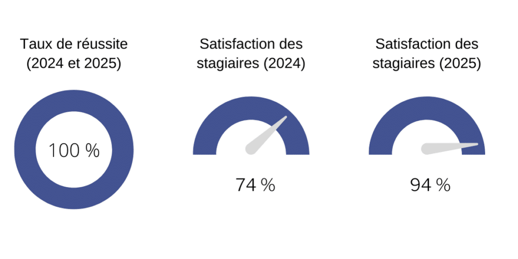 La formation est évaluée au travers d’un questionnaire à choix multiples (QCM) et d’une étude de cas pratique. Ces derniers sont validés par les professeurs.